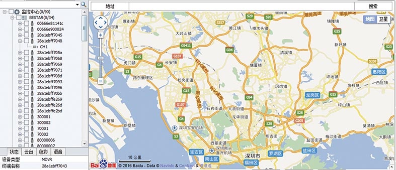 2. 实时全球定位:远程音视频监控指挥系统内置北斗/GPS定位系统模块和天线,利用无线模块将位置信息实时发送到监控中心,在平台的电子地图上显示出设备的具体位置。并可以根据设备编号,按日期查询历史行动轨迹。