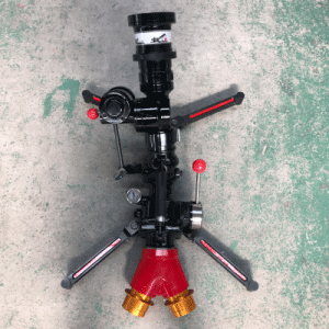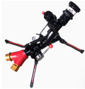 该炮可以手动控制与自摆转换快速切换,射程远,配有流量自动调节炮头,当流量压力较小时,仍能保持一定的喷射距离。体积小,移动方便,操作简便,机动性强,非常适用于各类大中型石油化工生产基地、各类易燃易爆、有毒有害火灾、各种大中型建筑的火场抢险救灾。炮体采用轻质铝合金材质,表面硬质阳极氧化后喷漆处理;炮脚锻造铝合金材质黑色氧化处理,4只支撑脚可折叠便于存放,拉开脚撑可定位作业,且脚撑拉开、折叠都有弹簧卡扣定位.防滑钨钢钉,脚撑上都装有防滑钨钢钉,防止水炮在作业过程中滑动,配有直杆式开关,可快速开启或关闭水流;
