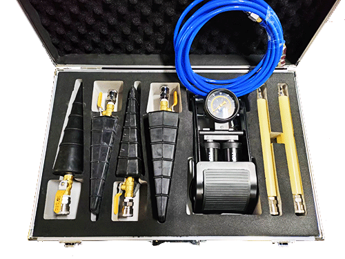 2.安全设备放置在手提箱内,配有安全操纵仪,放气阀与脚踏气泵。