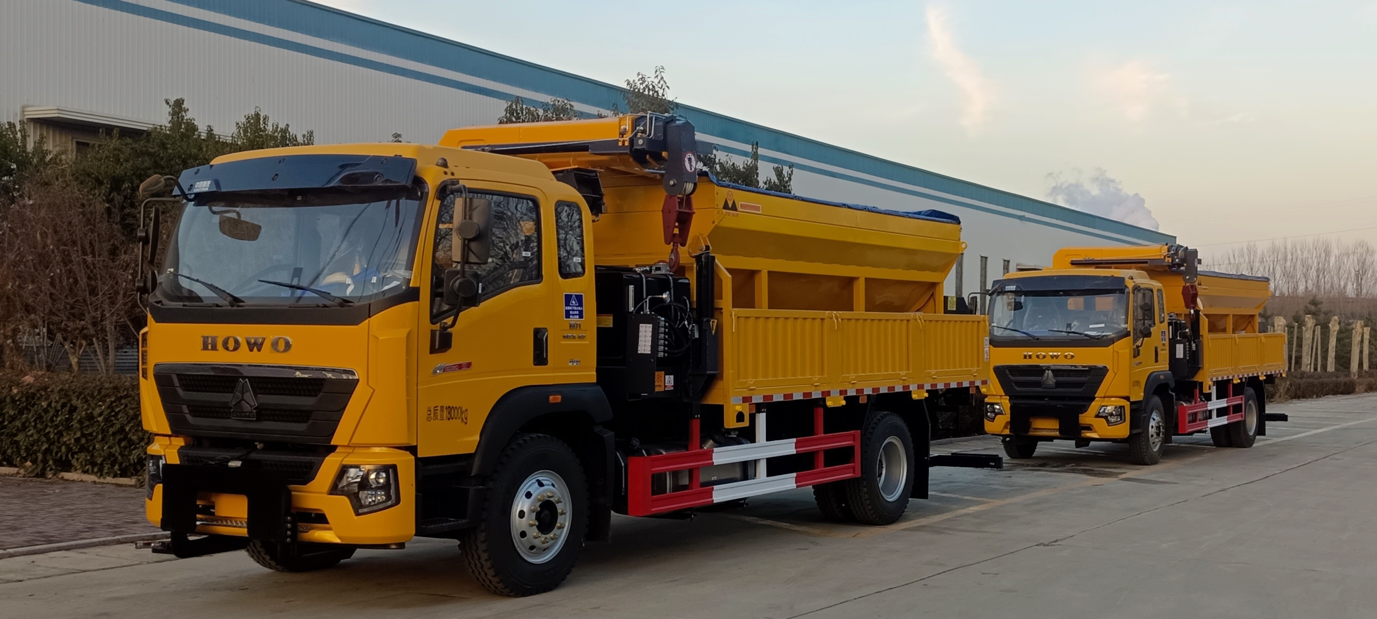 用于清雪、除冰等任务,融雪剂撒布车,融雪剂允许粒度≥15mm,热融水 箱容积≥3000L;或机械式除雪除冰车,配备除雪滚、除雪铲等。