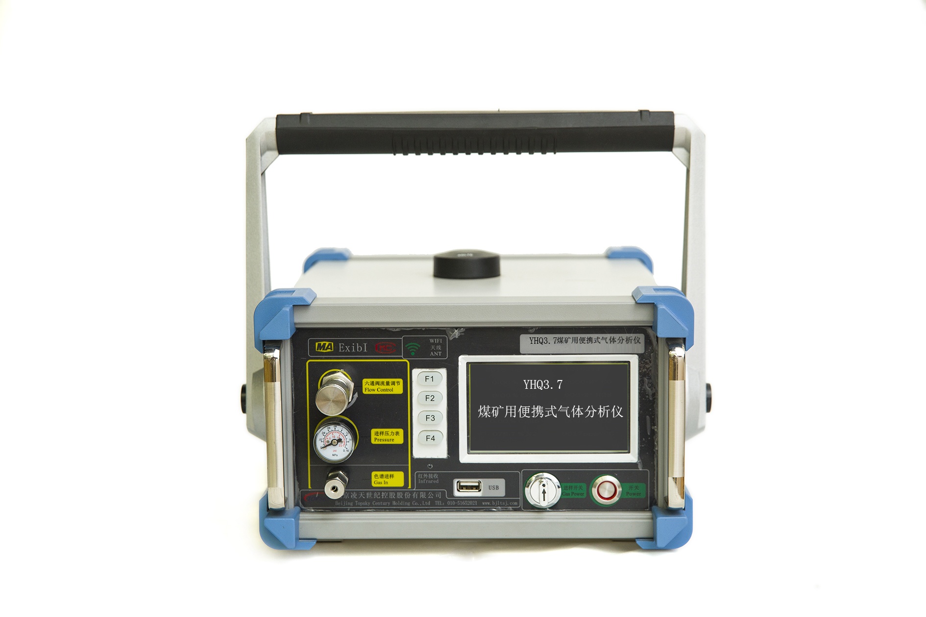 该仪器用于矿井作业现场分析时,采用现场直接取样,不需要其它设备的辅助采样,取样完成后仅需打开进样开关即可完成进样。