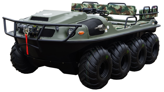 水陆两栖全地形车可提供一种安全的运输方式和可靠的运载平台,产品可以在山地环境、湿地环境、沼泽环境、水面环境、丛林环境等多种工作环境下,实现全天候连续作业。并且可以在灾害现场巡逻勘察、运送受伤人员、并有效实施援救。