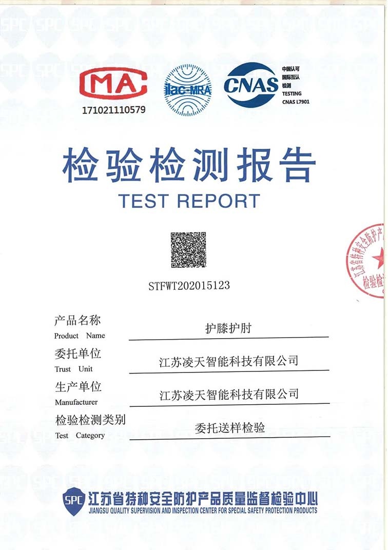 耐磨性能:试样在12kPa压力下,经≥2000 次循环摩擦后,表面无破损。重量:护肘≤60g,护膝≤145g。耐穿刺性能:≥246N。