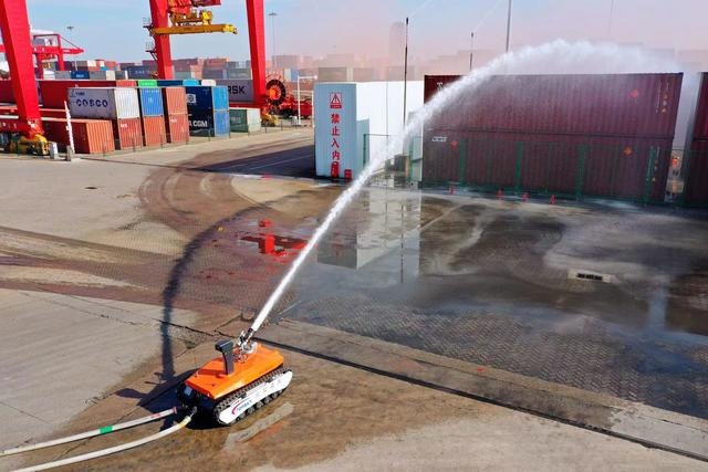 记者在现场看到,长2.2米、宽1.45米,外形酷似“小坦克”的灭火机器人,在工作人员的无线遥控操作下,前面“瞪”着双眼、后面拖着水管,迅速靠近火势最猛烈的地方,精准有力地将水喷向燃爆中心,不仅防爆防水,而且水泡射程超过90米!