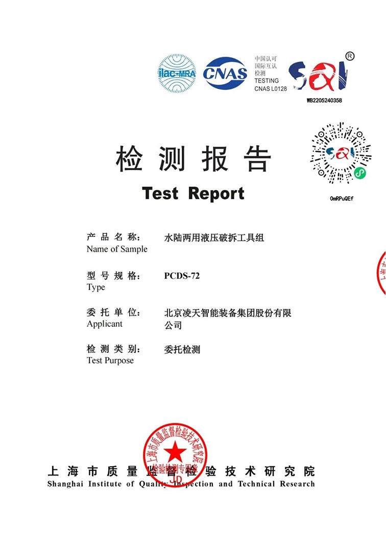 新品发布:水陆两用破拆工具组取得权威机构检测报告