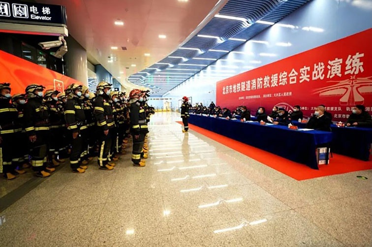 为全力做好2022年春运服务保障工作,防范化解重大安全风险,聚焦“全灾种、大应急”救援需要和地铁隧道火灾灭火救援处置能力,1月21日凌晨,北京市全要素地铁隧道火灾灭火救援综合实战演练在北京地铁大兴机场线大兴新城地铁站开展。整个演练调集了10个消防支队、52部消防车、248名消防救援人员参与。北京极悦娱乐2台消防内攻侦察机器人参与到此次演练中。