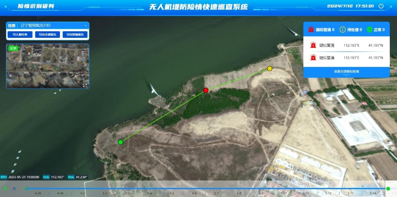 ϵͳÖ÷ÒªÕë¶ÔÑ´ÆÚµÌ·ÀÉøÂ©¡¢¹ÜÓ¿¡¢ËúÏݳ¡¾°½øÐпìËÙÅŲéÒþ»¼ÐèÇó£¬ÒÔÎÞÈË»ú´îÔØË«¹âÏà»úÆ¥ÅäÔÀí£¬½áºÏÈ˹¤ÖÇÄܱæÊ¶Ëã·¨ÐÎʽ½øÐÐѲ²é£»ÏµÍ³Éè¼Æ»¯·±Îª¼ò£¬¾ß±¸GIS¸ßÇåµ×ͼ£¬Äܹ»Õ¹Ê¾´åׯ¡¢ºÓµÀÃû³Æ¼°¾Î³¶ÈÐÅÏ¢£¬Êý¾ÝÖ§³ÖÒ»¼ü´¦Àí£¬±£ÕϸßЧÔËÐС£