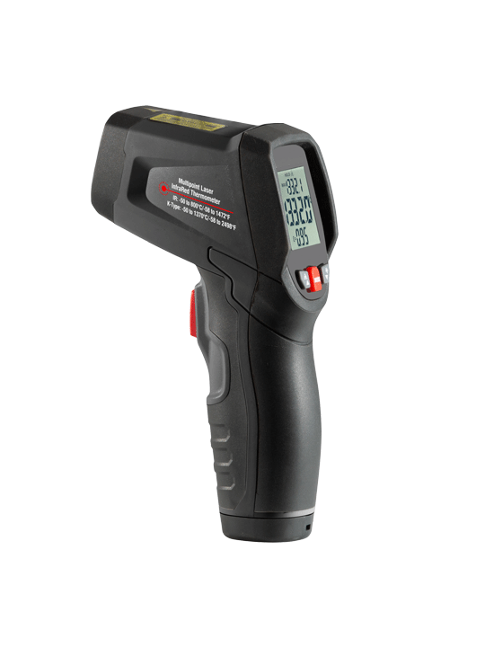 它具有激光瞄准,带背光源显示器。最大值,最小值,数据保持,高低温报警,发射率可调及自动关机功能。该手持式红外测温仪可以用来测试传统的接触式红外测温仪很难测试的物体表面温度。