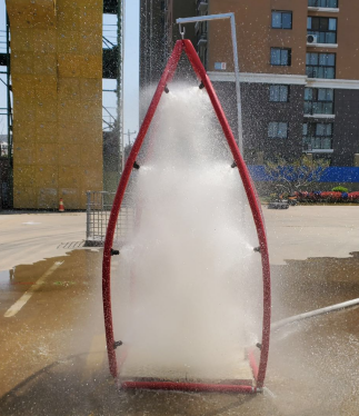 简易洗消喷淋器适用于部队战士进行化学事故处理后,在极端恶劣的环境下的临时应急洗消、消毒的可折叠有效的简易装置。该装置整体设计合理、安全,适合在狭小的空间或野外使用,可以利用周边环境,对其进行吊装固定。外部水源通过水带接入,形成回路,水通过水带上的喷嘴喷射到人体上,形成环形包围立体包裹,进行临时的应急洗消的作用。水压可根据进水的高低喷射的效果会不同,对人员服装或体表进行洗