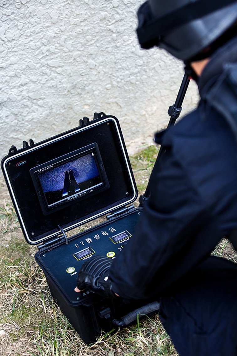 整套完整的系统装在一个携带箱内,可以迅速安装设置,操作简便。在反恐行动中,对房间内部情况的了解至关重要。静音电钻可以在不被犯罪分子察觉的情况下在墙上钻孔,然后伸入蛇眼探头观察房间内部状况。