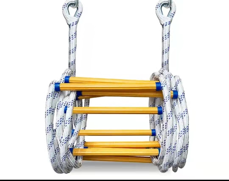 救生软梯是一种用于营救和撤离火场被困人员的移动式梯子,可收藏在包装袋内,在楼房建筑物发生火灾或意外事故时,楼梯通道被封闭的危急情况下,是进行救生用的有效工具。