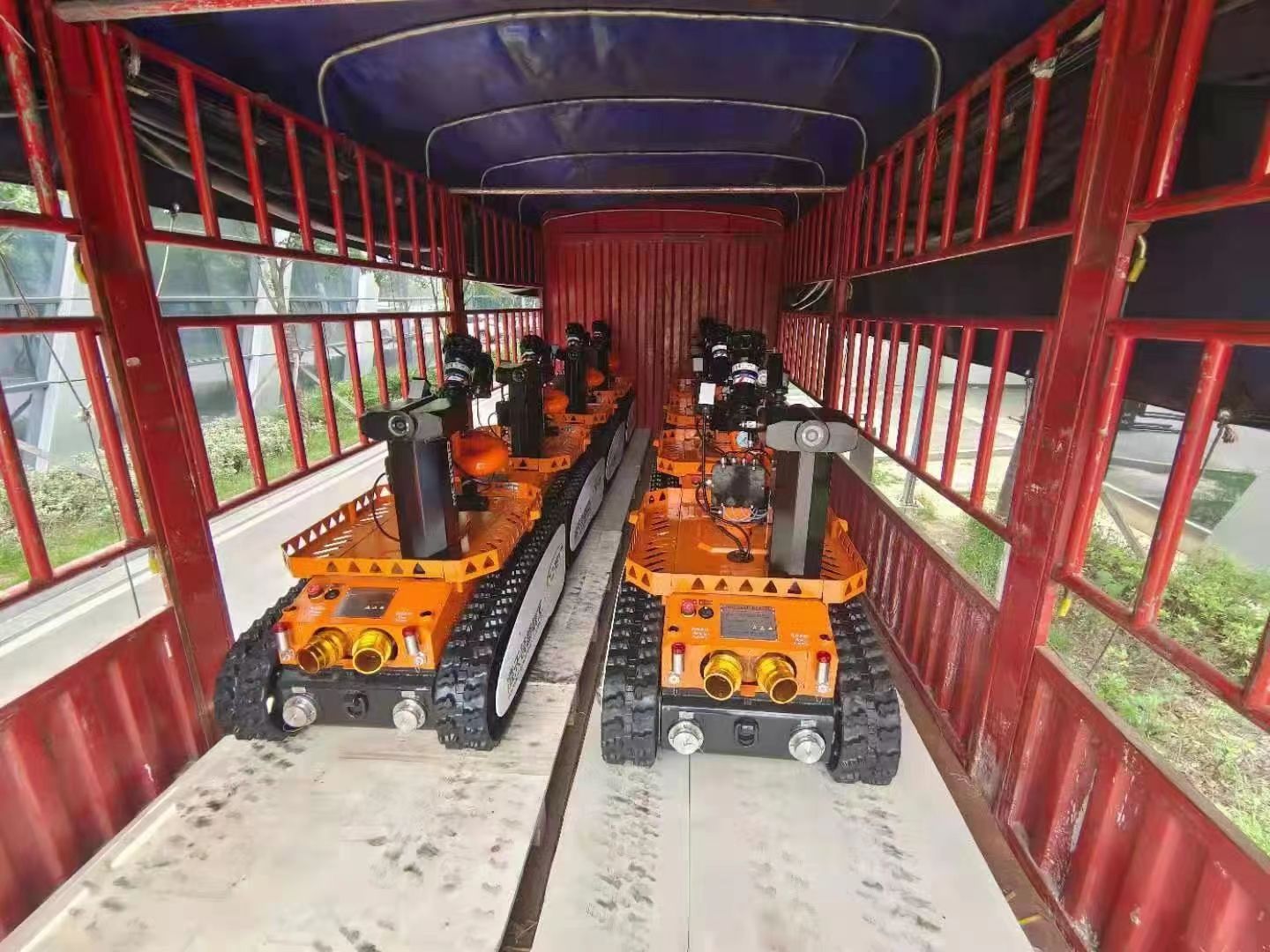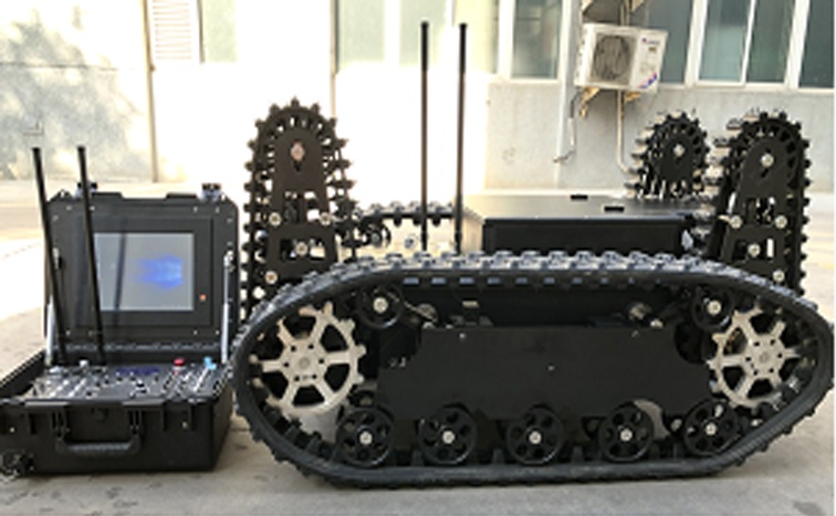 1300底盘主要是用来搭载其它智能装备,如机械臂、云台、消防炮等,底盘采用履带结构,采用前后4摆臂+履带的结构形式,履带和摆臂适合复杂地形,可以提高越障性能。可工作于恶劣环境当中,能适应各种地形快速作战部署。