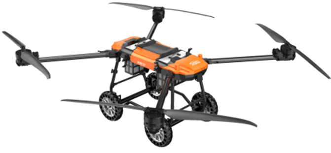 本无人机为北京极悦娱乐智能装备集团研发的多用途陆空两栖无人机平台,采用四旋翼机身设计,载重大,续航长,并且机体折叠标准化负载接口、集成航电系统,还支持选配雷达避障系统。同时,该无人机具备陆空两栖功能,可以在地面行驶,行走系统可快拆。满足消防灭火、应急教援、物资运输、环境监测等不同场是的行业应用。