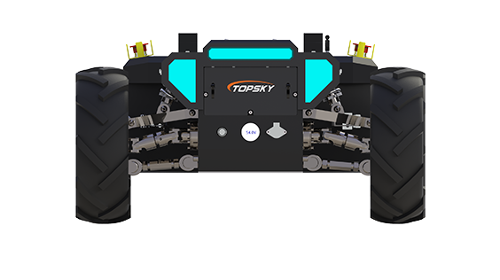 差速轮式机器人底盘采用锂电池电源作为机器人动力源,使用无线遥控的方式远距离操控机器人,并可定制复杂的操作模式,主控提供串口/标准CAN总线作为通讯接口。整机采用四轮独立驱动、四轮差速转向以及前后双横臂独立悬架结构,具有IP65防尘防水能力,能够在多种复杂环境运行。同时,整机采用模块化设计,四独立悬挂、左右电控箱及电池可快速拆卸维护更换。可搭载多种设备从而代替人进行高效率作业。