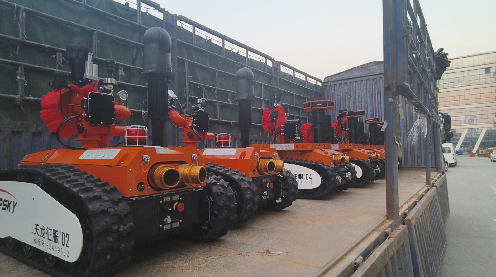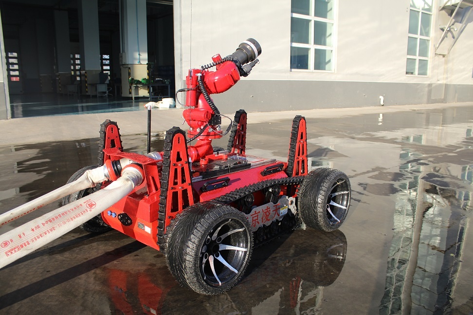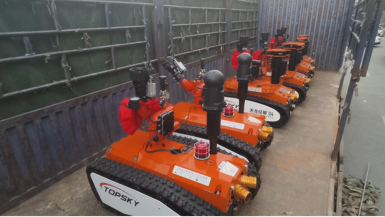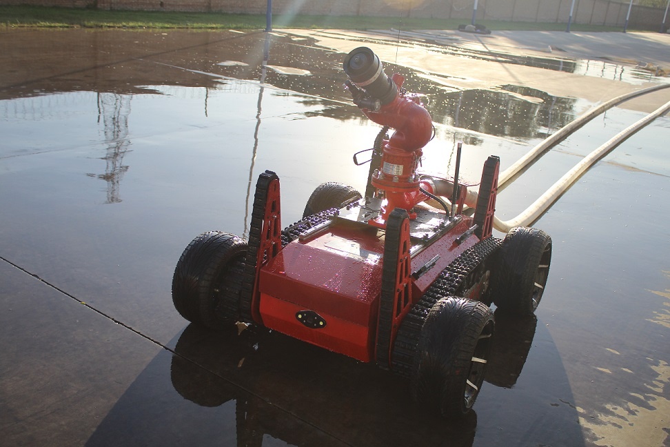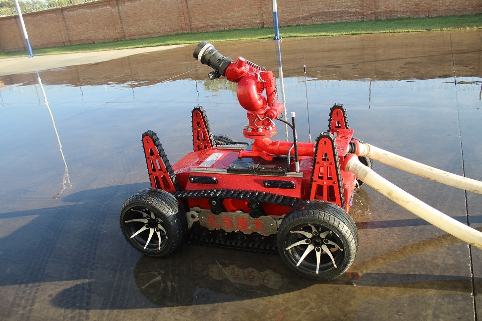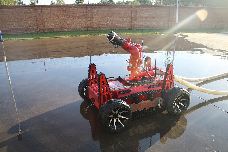 RXR-M80LGD消防灭火机器人采用锂电池电源作为动力电源,救援人员可远距离操控。本产品可适用于各种大型危险化学品、高层楼宇建筑、大跨度商业建筑、工厂、商贸企业、矿山、隧道、地铁等事故救援,主要替代消防员在执行危险救援任务。本产品具备灭火、音视频侦察、有毒有害气体侦察、灾区环境侦察功能;机器人采用前后4摆臂+履带+4轮胎轮履底盘结构,轮履合一的设计可以将速度和越障能力都能得到保证;轮式结构可以大幅度提高机器人的行驶速度,保证了机器人的快速部署、快速投入救援;