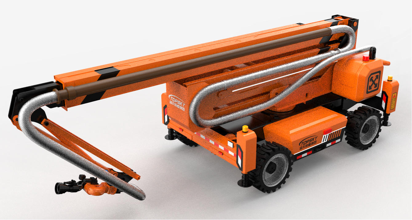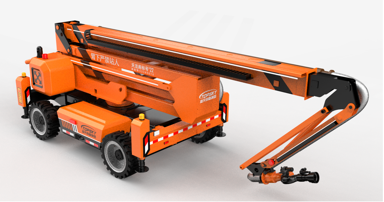 本产品具备远程操控、全景显示、高空喷射等功能,视野开阔,对着火点实施居高临下的压制及扑灭。