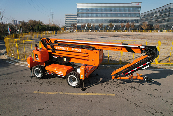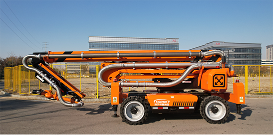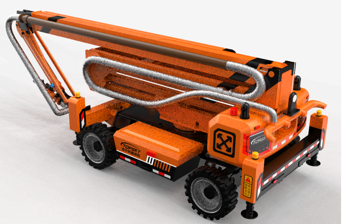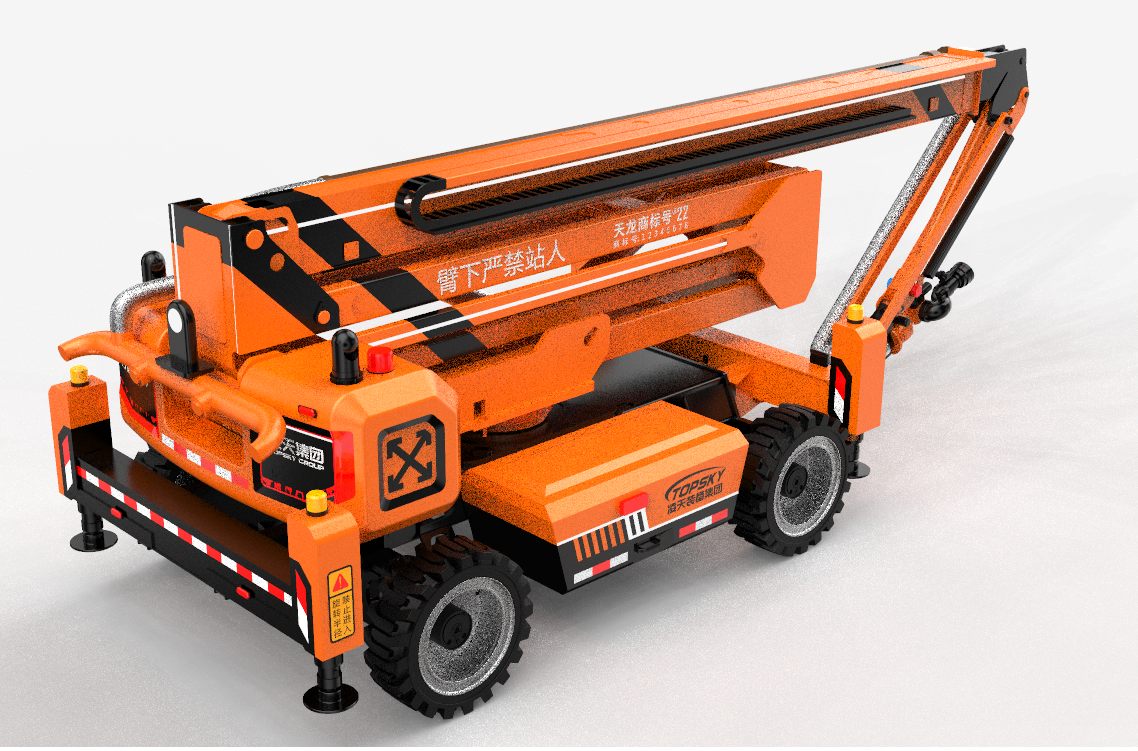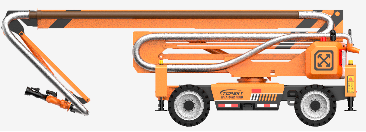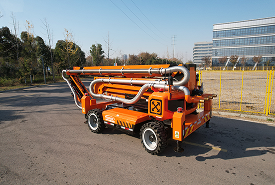 具有液压调平支腿,臂架作业时保证整机水平,防止发生倾翻,以及支腿安全报警,车体倾斜报警,举升避障、举升限制、上下互锁、风速报警等安全保护功能,进一步提升机器人举高喷射作业安全性。