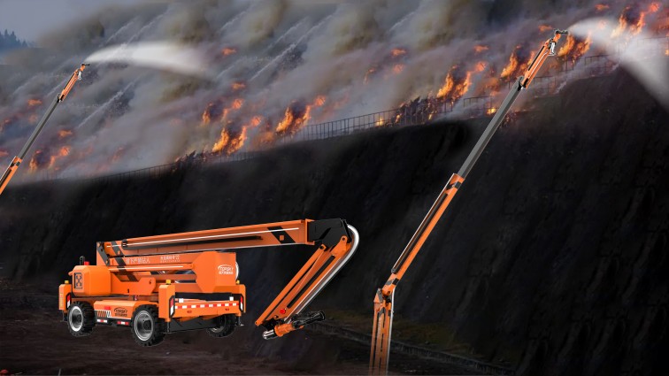 进行灭火消防炮喷射作业时最大高度可达20.5米,最大水平延伸可达11米,实现凌空对火场的高空压制喷射需求。