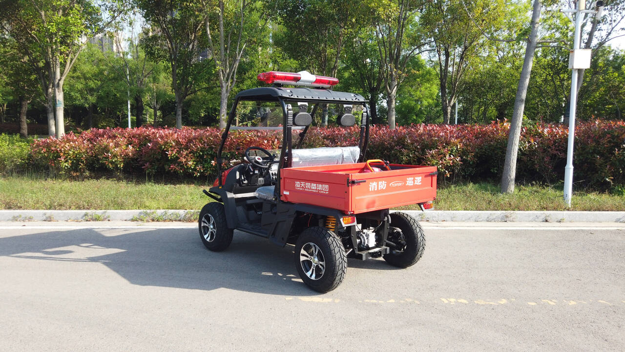 LT-400型消防摩托车具有超强的越野性能,无论是在崎岖的山路还是在狭窄的街道,只要能让车身进出的空间就能快速、灵活地进行灭火救援,突发火灾险情时可搭载2人形成战斗小组消灭火源。合理的器材布局能迅速从各个方向拿取灭火器材,干粉灭火器只要到达现场立即就能投入战斗,手抬机动消防泵可迅速移动到消防栓、农田、粪坑、池塘获取水源进行高效灭火,性能稳定可靠。同时配备有高压细水雾装置,能到达现场后,快速投入救援当中。车上可选配有消防水带、消防栓扳手、直流水枪、消防大斧等设备,确保救援高效快捷。