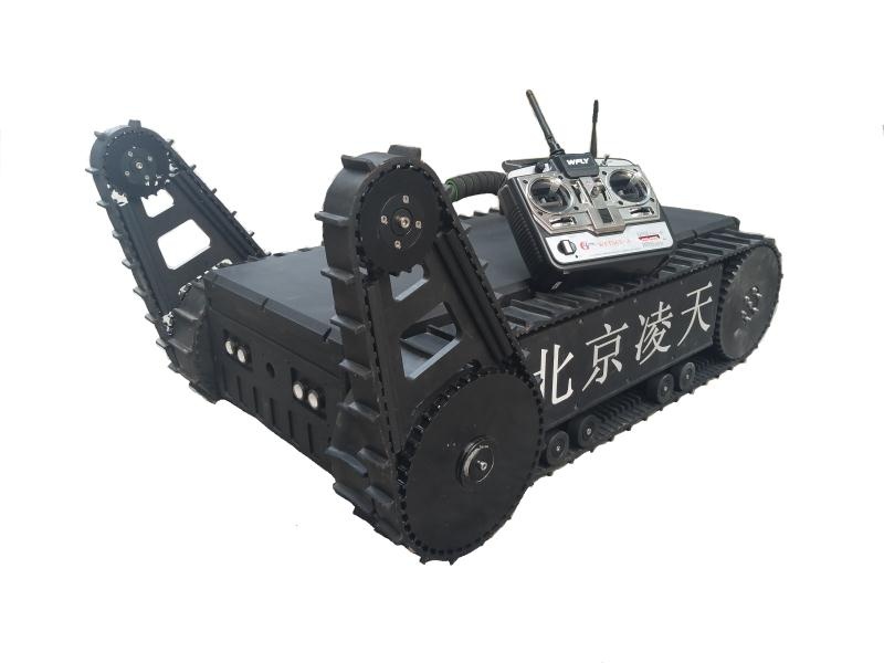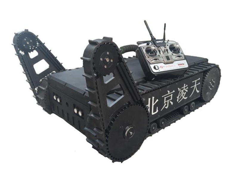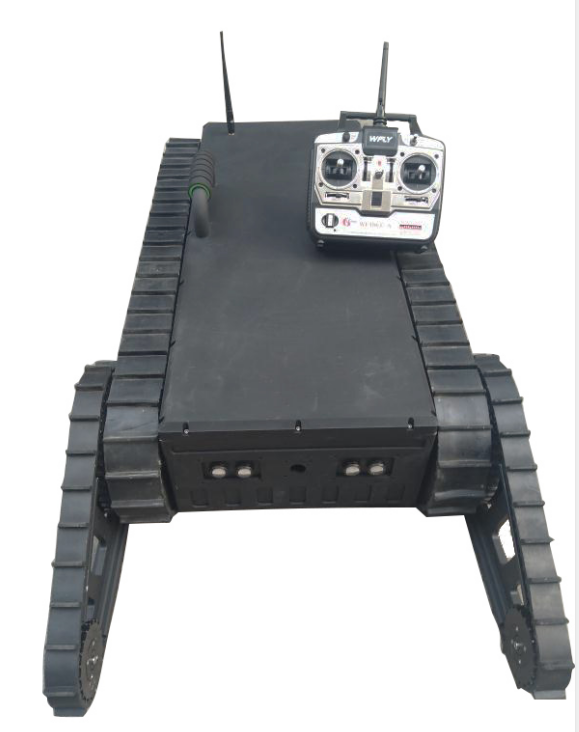 单摆臂机器人底盘车是一款通用型履带式机器人底盘车,可满足小型侦查类机器人越野性能及平稳性能的超高要求,方便用户搭接设备、扩展应用,内部搭载高扭矩直流无刷减速电机,为底盘提供强劲动力,迎难而上,精准的底盘高度搭配合理功率的电机,采用前2摆臂+履带的结构形式,履带和摆臂适合复杂地形,可以提高越障性能,且做出快速作战部署。