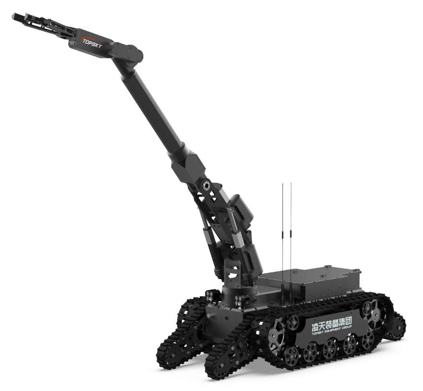 重型排爆机器人主要是用来处理爆炸物相关工作的排爆式机器人,也可用于侦察人难以达到的地形的一种机器人。6自由度排爆机械手能实现任意角度旋转,最大可抓举55KG的重物提升1m并转移,机械臂装载爆炸物销毁器,可现场摧毁爆炸物,底盘采用履带结构,能适应各种地形快速作战部署。同时机器人配备光纤自动放线机可以网络干扰情况下通过有线远距离控制。重型排爆机器人可与配件一同使用,包括销毁器(例如42mm),爆炸物的远程引爆控制系统等。