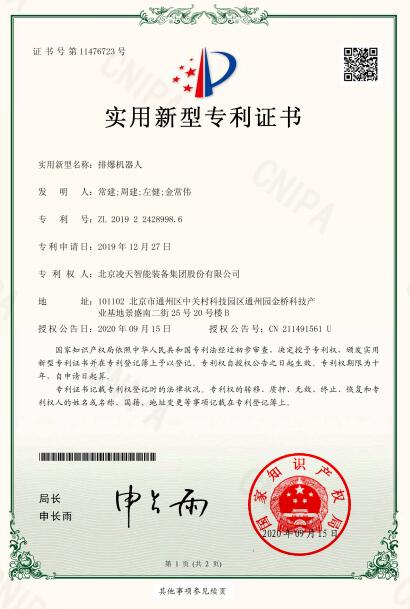 奖项类 | 2019获得第一届安全科技进步奖 | 防爆消防灭火侦察机器人 |