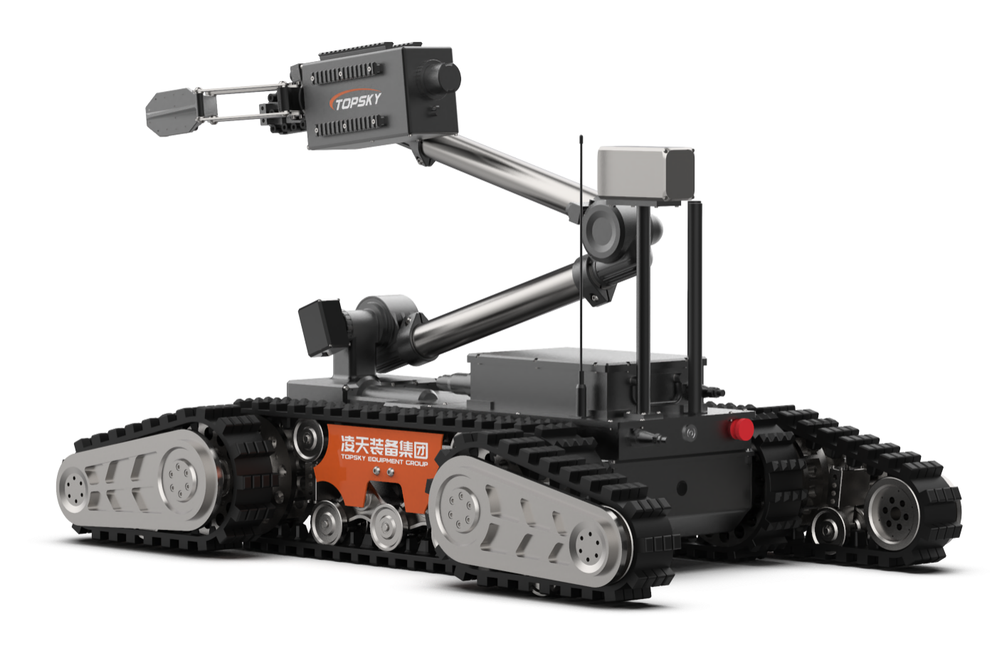 排爆机器人主要是用来处理爆炸物相关工作的排爆式机器人,也可用于侦察人难以达到的地形的一种机器人。6自由度排爆机械手能实现不同角度旋转,最大可抓举55KG的重物,机械臂装载爆炸物销毁器,可现场摧毁爆炸物,底盘采用履带+双摆臂结构,能适应各种地形快速作战部署。同时机器人配备有线控制可以网络干扰情况下通过有线远距离作业。排爆机器人可与配件一同使用,例如销毁器,爆炸物的远程引爆控制系统等。