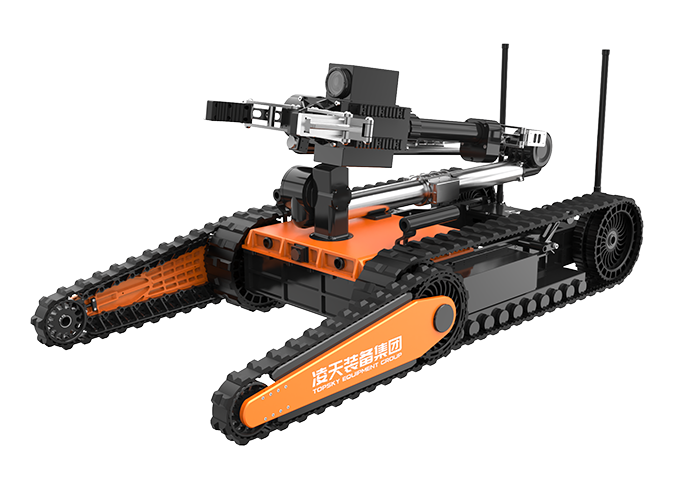排爆机器人主要是用来处理爆炸物相关工作的排爆式机器人,也可用于侦察人难以达到的地形的一种机器人。7自由度排爆机械手能实现不同角度旋转,近端最大可抓举40KG的重物,小爪可抓取5KG重物,机械臂可装载爆炸物销毁器,可现场摧毁爆炸物,底盘采用履带+单摆臂结构,能适应各种地形快速作战部署。