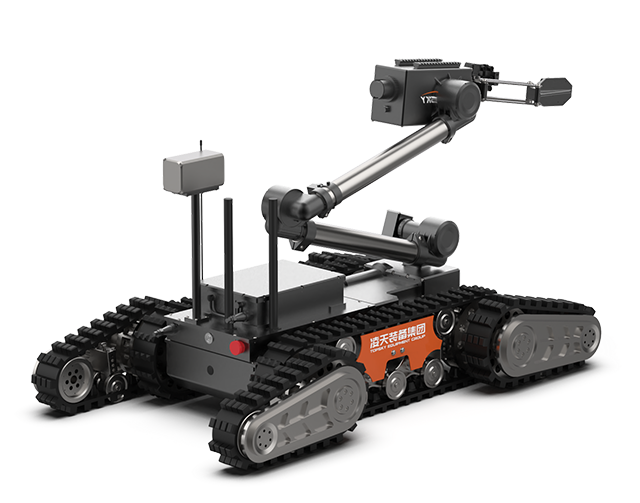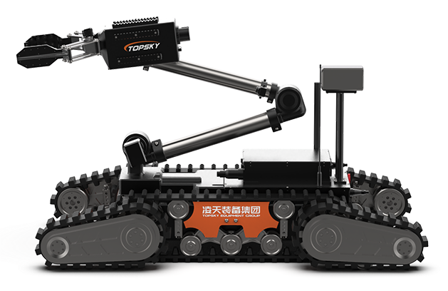 排爆机器人主要是用来处理爆炸物相关工作的排爆式机器人,也可用于侦察人难以达到的地形的一种机器人。6自由度排爆机械手能实现不同角度旋转,最大可抓举55KG的重物,机械臂装载爆炸物销毁器,可现场摧毁爆炸物,底盘采用履带+双摆臂结构,能适应各种地形快速作战部署。同时机器人配备有线控制可以网络干扰情况下通过有线远距离作业。排爆机器人可与配件一同使用,例如销毁器,爆炸物的远程引爆控制系统等。