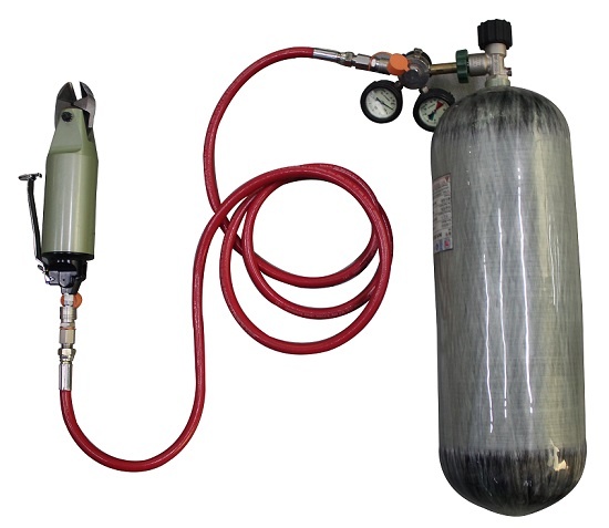 矿井锚护网的拆除比较复杂繁琐,常规的办法采用手动钢筋钳,存在劳动量大、效率低等诸多问题,QSD-4.5矿用气动剪断装置(气动铁丝速断器)是一款能连续快速剪切铁丝的设备,采用气动原理,由井下压风管道提供动力,切割范围:铁丝、钢丝、锚护网;最大剪断直径: