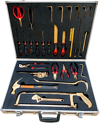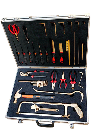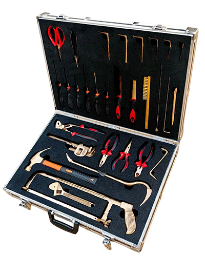 NMT-WA03型号无磁排爆工具组通常为36件套。工具由铍青铜合金制成,装在坚固的硬质箱体内,箱内有四个可拆卸嵌体,便于工具的分类存放与携带。
