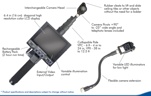 可伸缩红外视频搜查仪,最远距离达4.9米,可对检查人员难以到达的区域进行探测。本设备质轻(仅2千克),便携性好,能够更好的完成搜查任务。
