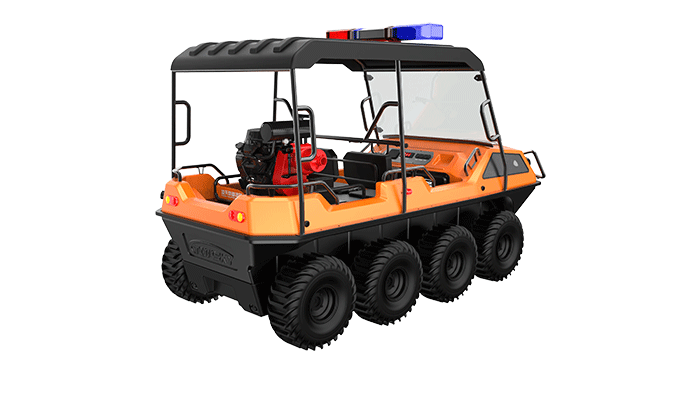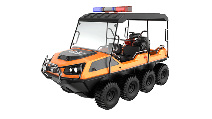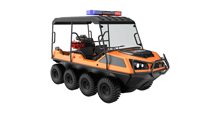 在复杂恶劣的地形条件和自然环境下,森林消防水陆两栖全地形车可以让搜救队员和携带的救援装备快速到达救援现场,减少徒步带来提供消耗,完成最后一公里最好五分钟紧急救援任务。森林消防水陆两栖全地形车可配备点到绞盘、救援担架组件、探照灯、警示灯、警报器、脱钩、破拆工具等装备, 给救援团队提供救援保障,更安全的解救伤员和疏散群众。