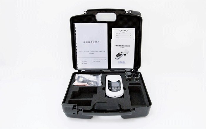 便携式水质检测仪(氨氮纳氏法/氨氮水杨酸法/余氯/总氯/臭氧/二氧化氯/硫化物/溶解氧/磷酸盐/硝酸盐/亚硝酸盐/碱度/硬度/PH/六价铬/铜/总铁/氟化物/氰化物/氯化物/碘/溴等参数)是智能水质快速分析仪器,仪器采用进口高亮度准平行LED冷光源和光学结构设计,光学性能和检测效果极佳。