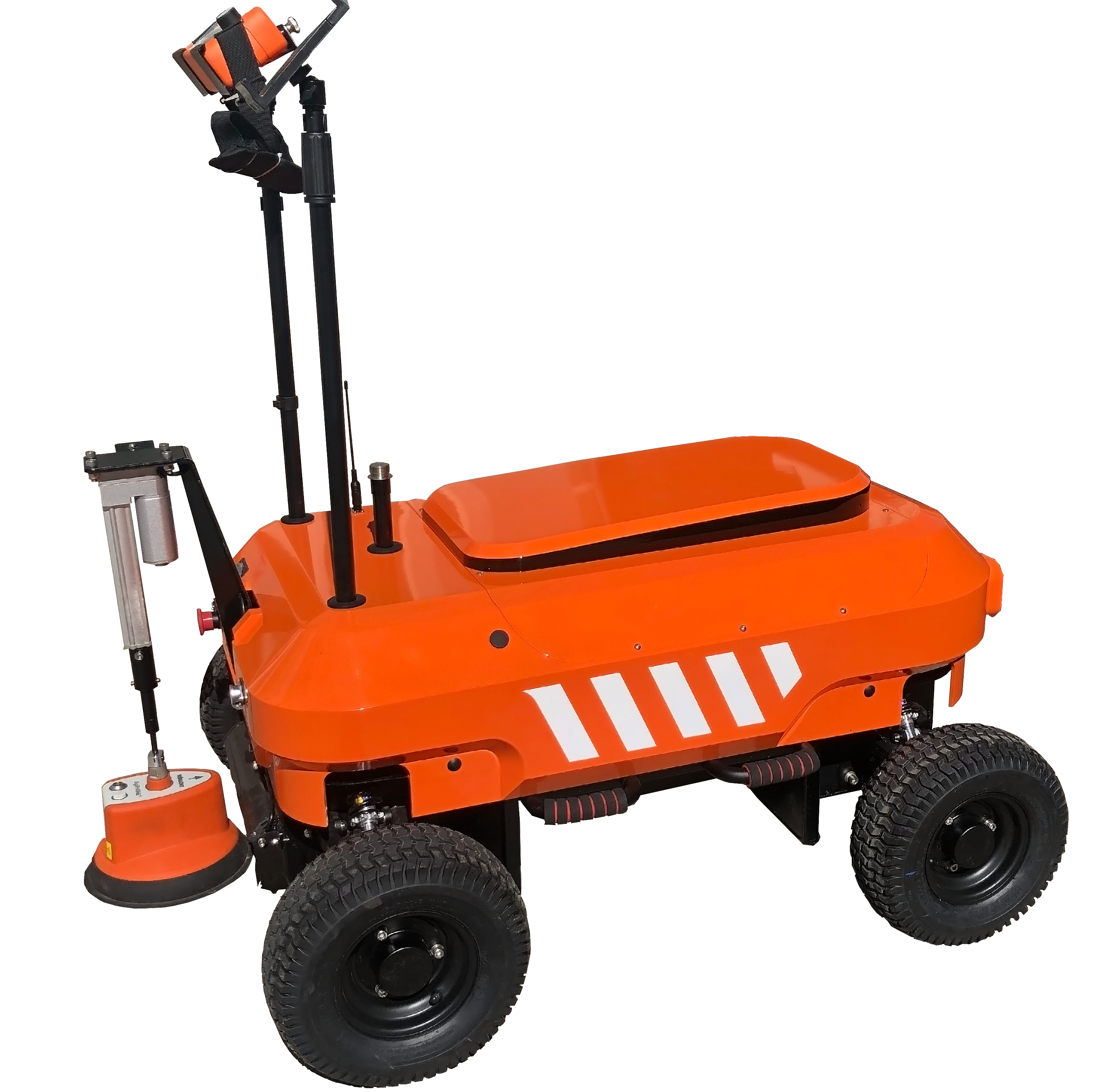 RXR-C11全地形探地雷达机器人采用锂电池电源作为机器人动力源,使用无线遥控的方式远距离操控机器人及所搭载设备。整机采用四轮独立驱动、四轮差速转向以及前后双横臂独立悬架,具有IP65防尘防水,能够在多种复杂环境运行,搭载探地雷达、测距轮设备,可用于复杂环境地下工程勘察、市政管线、道路桥梁、隧道等地质,质量,缺陷,病害检测,从而代替人进行高效率作业。
