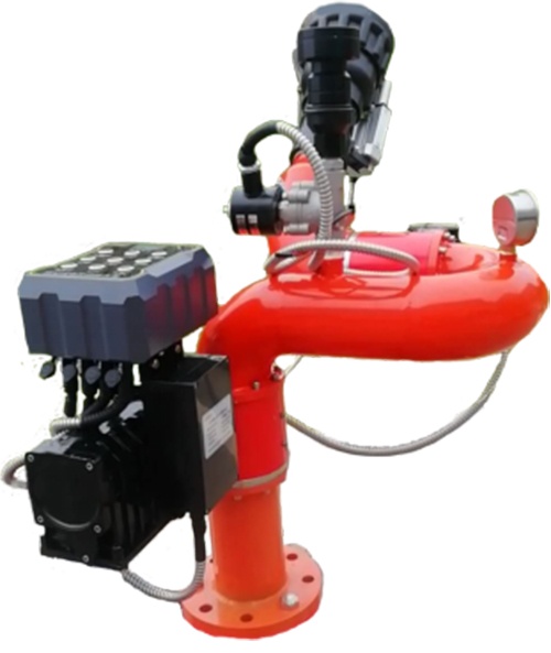 水炮头的最大雾化角度可达120°,使得水炮的雾化喷射范围更大,为大面积给火场降温提供了更大帮助,同时,雾化的水雾颗粒可以快速汽化隔绝火场周围的空气,达到切断燃烧要素快速灭火的目的