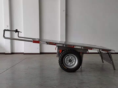 2.组合式电动地震救援运输车既轻便耐用还节约运输空间,采用分体式设计,防护栏具有快速折叠功能,装货板可以重叠堆放。适用于各种道路及地震救援现场运送装备及物资;推车续行时间大于5小时,电池为高能动力锂电池;具有无电后可快速转换为人力推车功能;具有前进、后退功能;有平缓的驱动控制功能;使用碟刹制动轻松灵活。带前照灯方便在夜间前行。