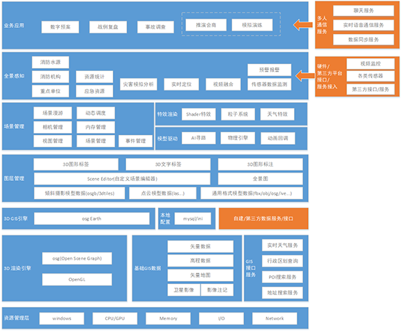 通过虚拟仿真技术、数字化技术等手段,建立一个与现实一致的三维实景数字空间,基于实景化的数字空间,开展基于一张图的数字化预案制作、战例复盘、多人协同演练、推演会商、事故调查等应用。